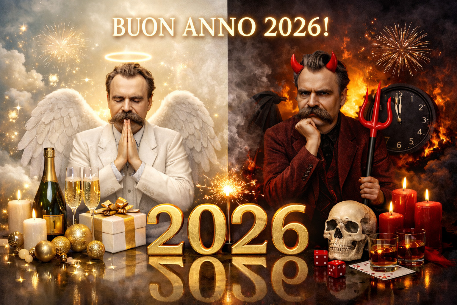 Voglio lasciare un messaggio di auguri di buon anno che non sia ipocrita e retorico piuttosto rifletta le dinamiche bio-psico-sociali che stanno alla base della sofferenza. Mi rivolgo in particolare ai giovani bovesi, per giunta quelli più ribelli e oppositivi, perché possano trarre anche loro dall’esperienza la forza per integrare la rabbia nel contesto sociale sublimandola in azioni virtuose e rispettose dell’uomo. Per cui racconto la storia del filosofo Nice che si scontrò tanto cruentemente con la società, fino a sfidare Dio e impazzire. Bambino altamente sensibile, dotato nella musica e nella letteratura, con la filosofia finisce per demolire le sue stesse personali fondamenta: non solo lo spirito di moderazione borghese proprio della famiglia, ma anche il cristianesimo. Si sente superiore: fin troppo. <<Se Dio è morto tutto è permesso>>. Preso atto di questa tragica ed euforica verità, teorizza il nichilismo assoluto e un disprezzo totale per la misera condizione umana: un oceano di fango da cui si salveranno solo pochi superuomini. In un primo momento ne è entusiasta poi scivola in una profonda crisi allucinatoria. Cosa è accaduto? Il suo inconscio o la sua Junghiana “Ombra” gli manda un messaggio: “Fermati Friederich! Non ascoltarlo più, non seguire più questa folle ribellione, o finirai per diventare come lui! Sarai un demonio incatenato o, peggio, diventerai un povero folle demente! Diventerai un mostro, un capro espiatorio, destinato all’esclusione dal genere umano”. La morale della storia è questa: se sei una persona altamente sensibile e hai sviluppato grandi capacità critiche, sappile moderare e integrare nel contesto umano. Nessuno può vivere come un dio solitario, nessuno può sostenere la posizione dell’uno-contro-tutti. Saluti, a questo punto, “rivoluzionari” e auguri di buon anno 2026.
